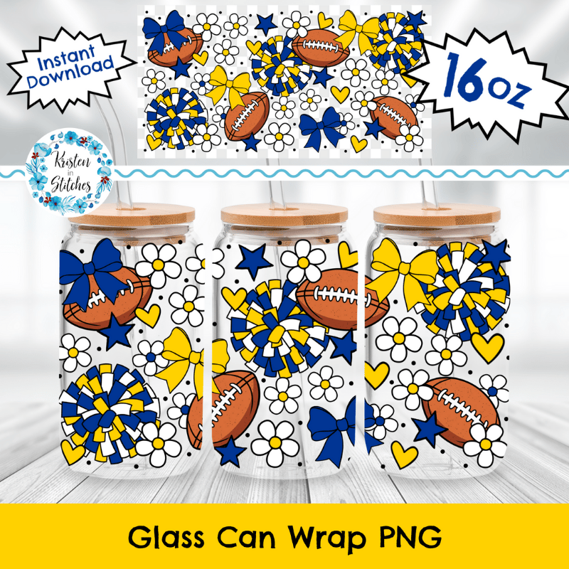 Football Team 16 oz Glass Can Wrap Transparent PNG, Los Angeles LA Rams Blue Yellow