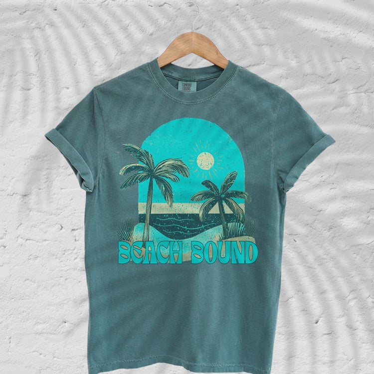 Summer Shirt Mockup | Heat Waves and Beach Days Tee | Retro Neon Beach Graphic PNG
