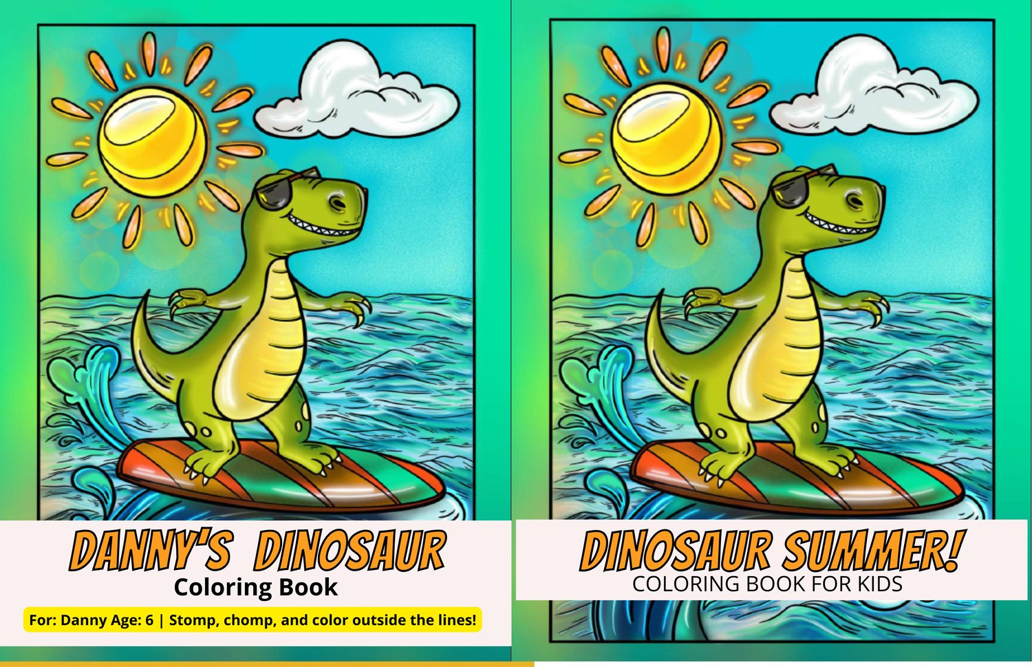 Dinosaur coloring pages meet summer fun in this sun-soaked printable coloring book for kids! Join your favorite prehistoric creatures on the beach, at the pool, and out on summer adventures. Every page features a unique scene packed with detail kids ages 3–10 will love to color.
