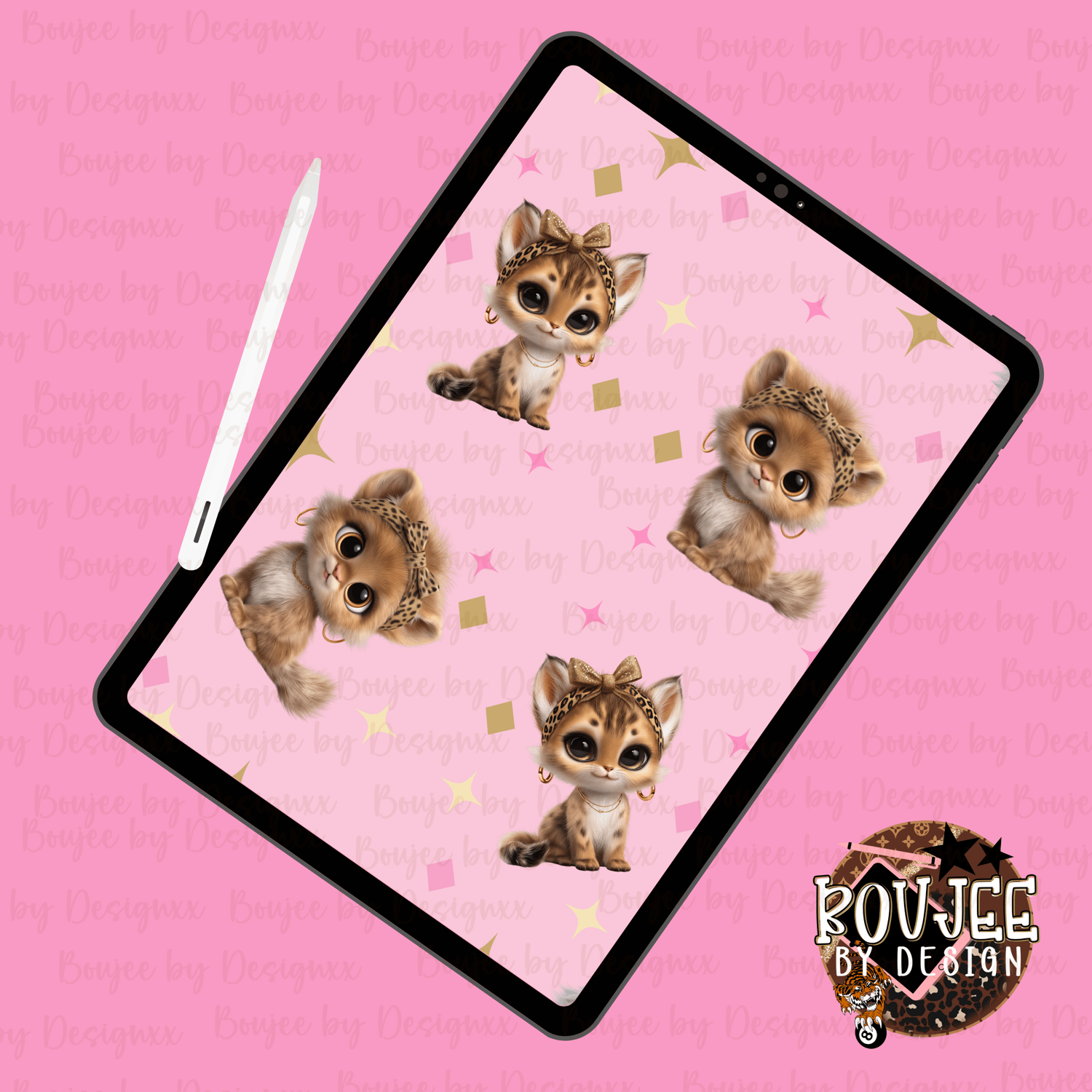 Boujee Kitty Seamless Digital Paper | Cute Pink Leopard Cat Sublimation PNG | Girly Seamless Background for DTF & Printing