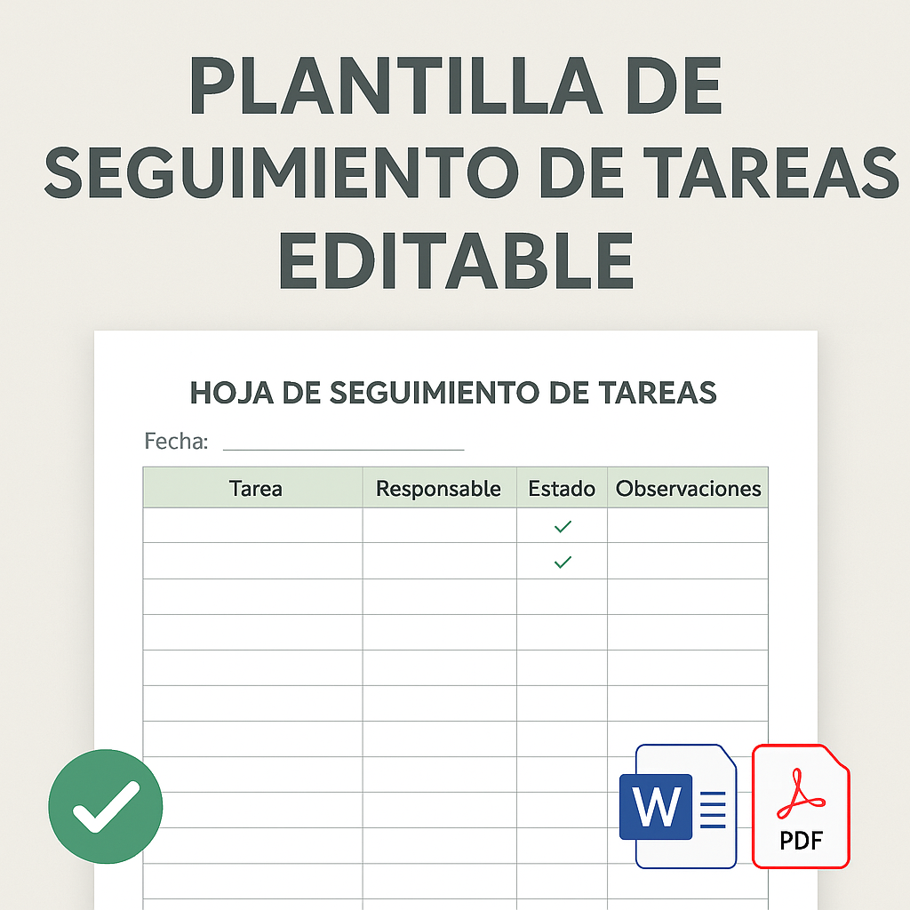 - Secciones para fecha, tarea, responsable, estado y observaciones