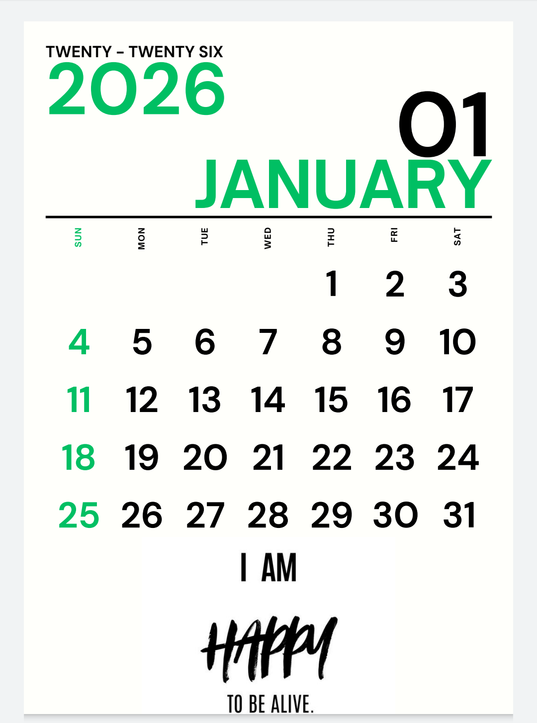 "I AM" AFFIRMATIONS 2026 MONTHLY CALENDAR