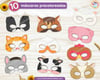 Este pack incluye DIEZ máscaras de diferentes animales de la granja en color, para imprimir: vaca, caballo, cerdo, oveja, gallina, pato, cabra, burro, gato, y perro.
