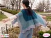 This top-down shawl explores those four states through a combination of different stitches and shaping for each. Solid is expressed with a dense, crossed stitch and traditional full circle pi shawl with a slit to aid in ease of wearing. Liquid uses elongated stitches to mimic waves in water and convert the shawl to a full square. Gas utilizes regularly spaced increases around four spines and a combination of garter stitch and lace. Finally, Plasma inserts additional panels over those spine stitches.