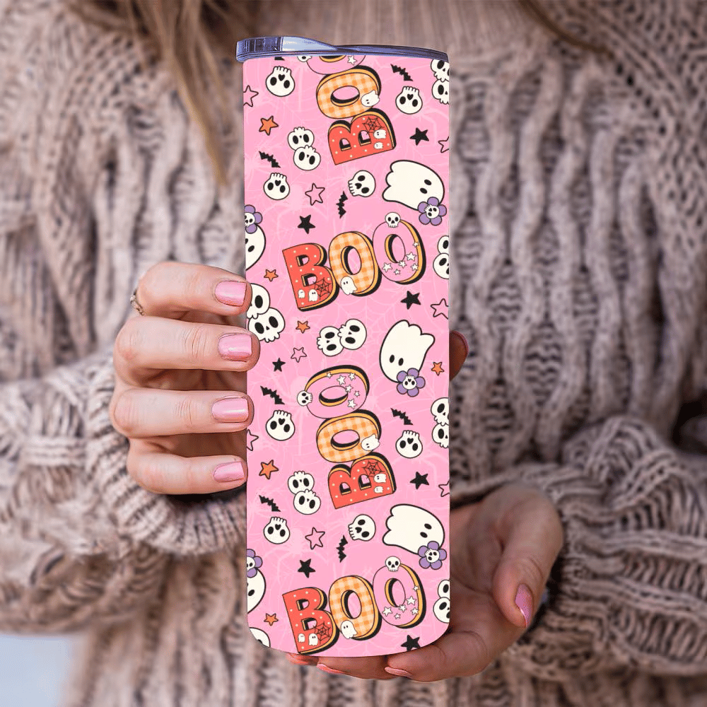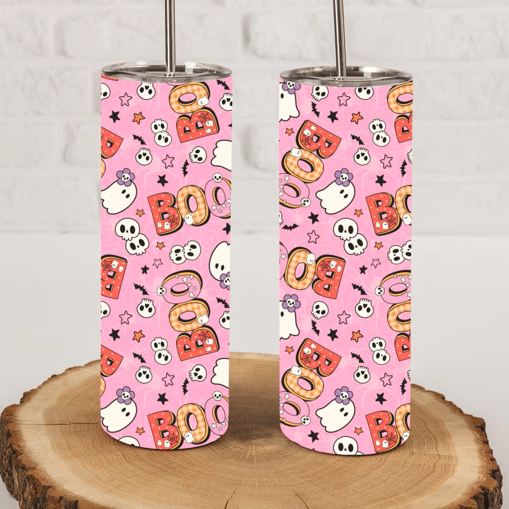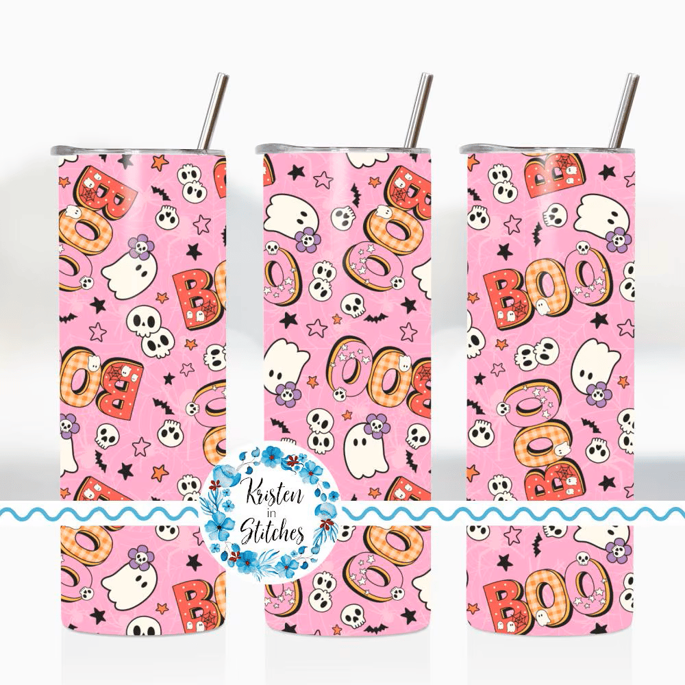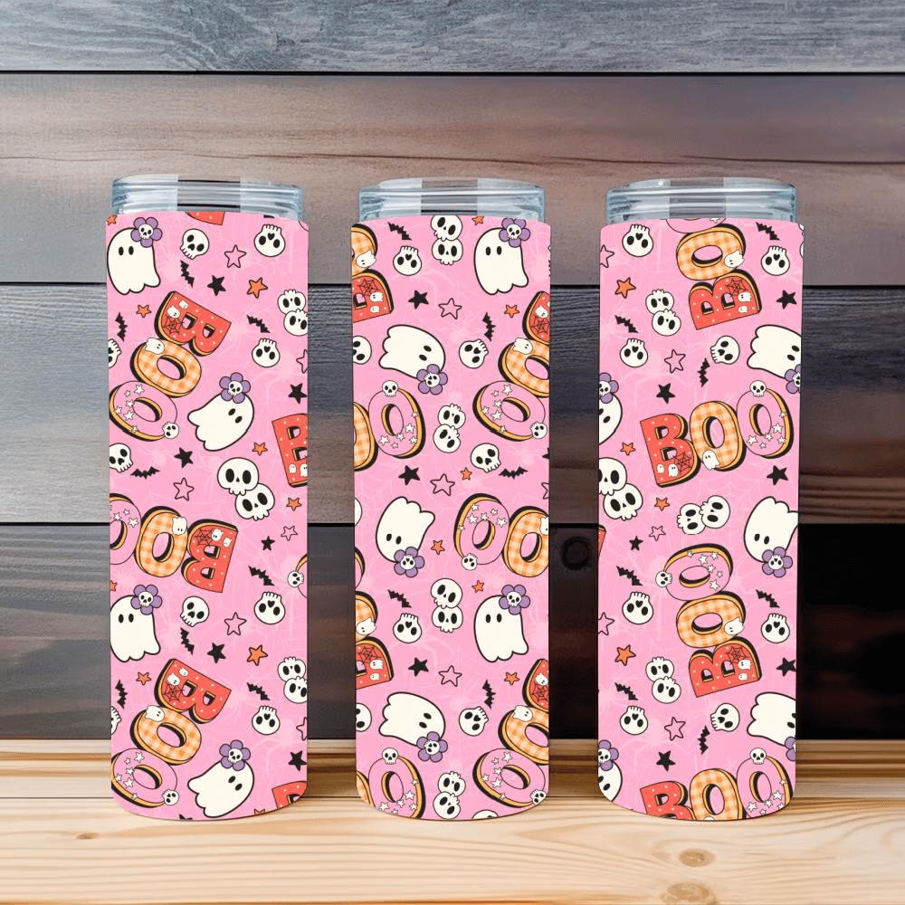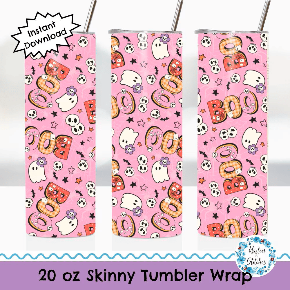 Skinny Tumbler Wrap, 20 oz, Printable Sublimation, Boo Pastel Friendly Halloween Ghosts