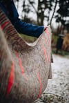 28 sts and 36 rows = 10 cm/4” in Garter st measured flat after wet blocking.