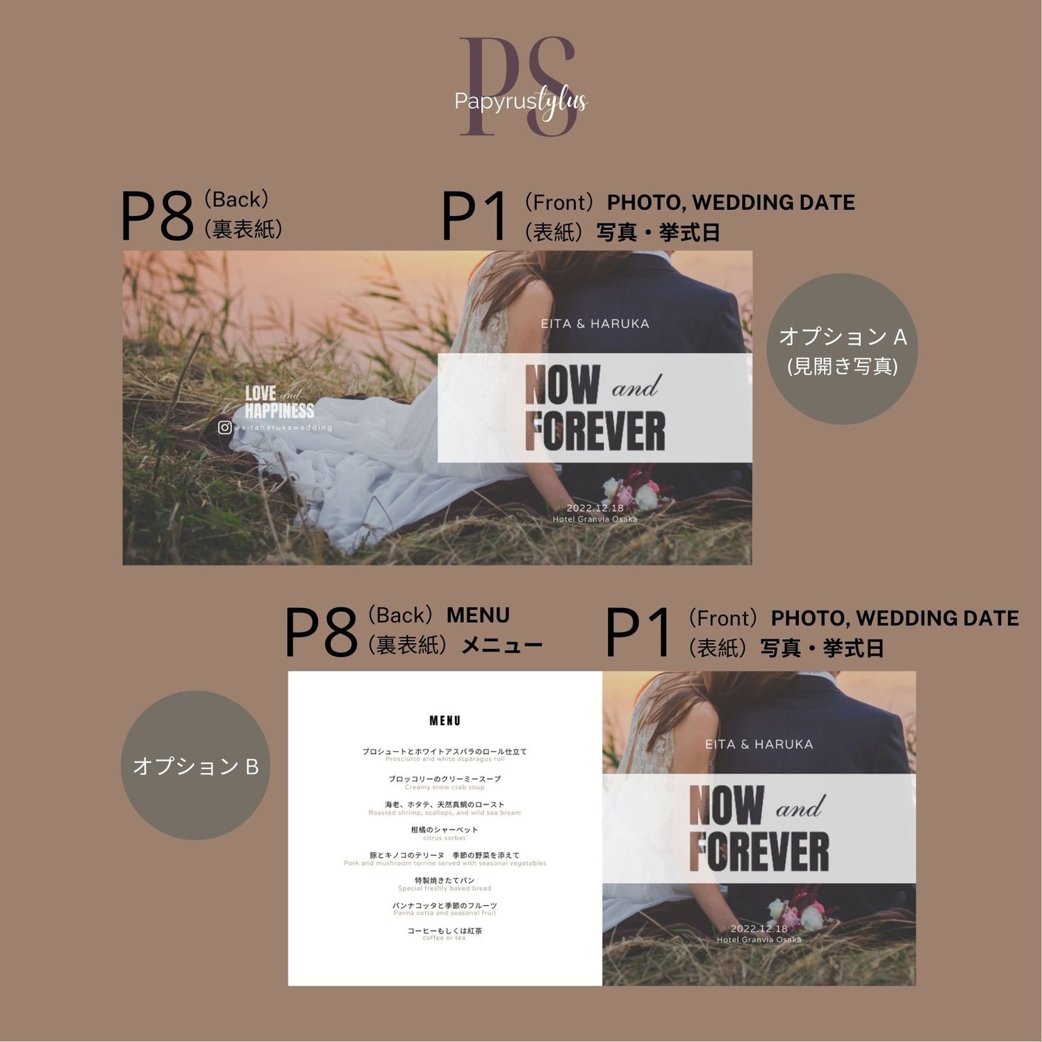 P.8(裏表紙)オプション A - 表紙見開き写真;オプション B - メニュー