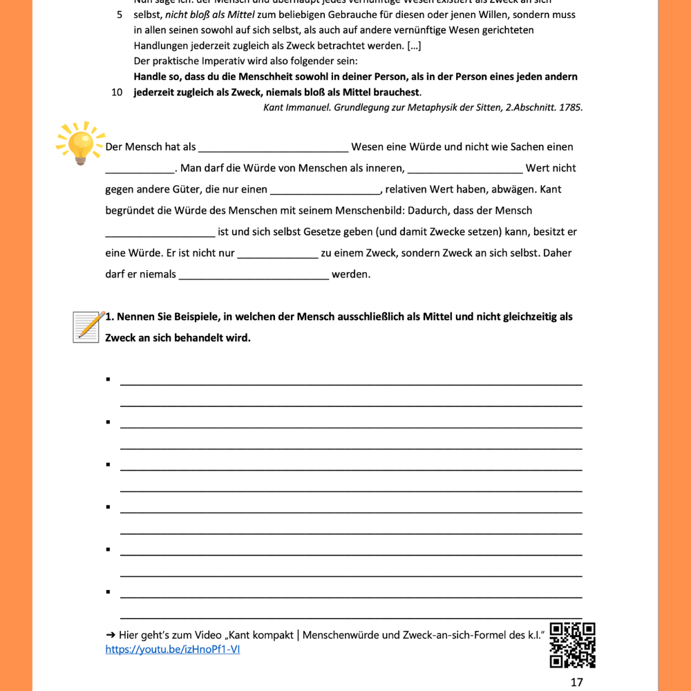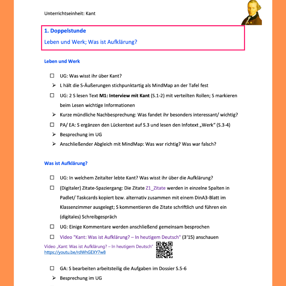 Die Unterrichtseinheit "Einführung in Kants Ethik" enthält