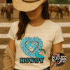 Howdy Western Cowgirl & Horse Heart PNG – Rustic Turquoise Cracked Texture – Sublimation & DTF Print