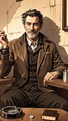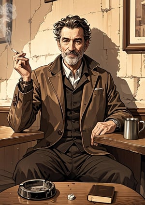 The man’s posture and expression convey calm authority and dignity, inviting viewers to imagine the kind of life he has led. Everyday details such as the coffee cup and ashtray create a sense of realism and intimacy, capturing a fleeting yet powerful moment of daily life.