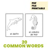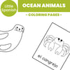 This product contains large and simple designs with thick lines that are easier to see and perfect for small children's hands. Coloring pages include coral, cangrejo, delfin, anguila, pez, ballena, medusa, langosta, pulpo, orca, ostra, caballo de mar, foca, tortuga marina, tiburón, concha, camarón, estrella de mar, mantarraya, morsa (coral, crab, dolphin, eel, fish, whale, jellyfish, lobster, octopus, killer whale, oyster, seahorse, seal, sea turtle, shark, shell, shrimp, starfish, stingray, walrus)
