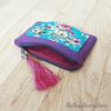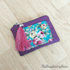 A cute mini clutch that can hold a 6” phone on the main zipper compartment or a 5” phone on the exterior patch pocket.