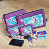 This is a set of four pouches that features an exterior patch pocket and has several possible variations like shoulder strap, wrist strap, interior pocket with a single or double row of card slots.