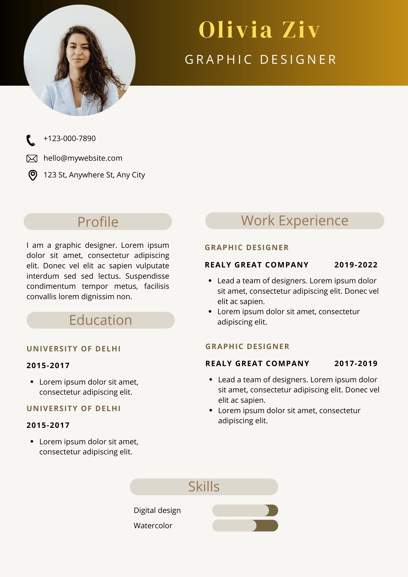 Graphic Designer Professional CV / Resume - Olivia Brown (A4 PDF)