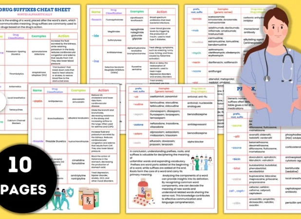 Pharmacology Prefix Suffix Study Guide Cheatsheet