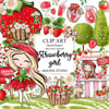 Strawberry Girl Hand Drawn Clipart by Masha Studio