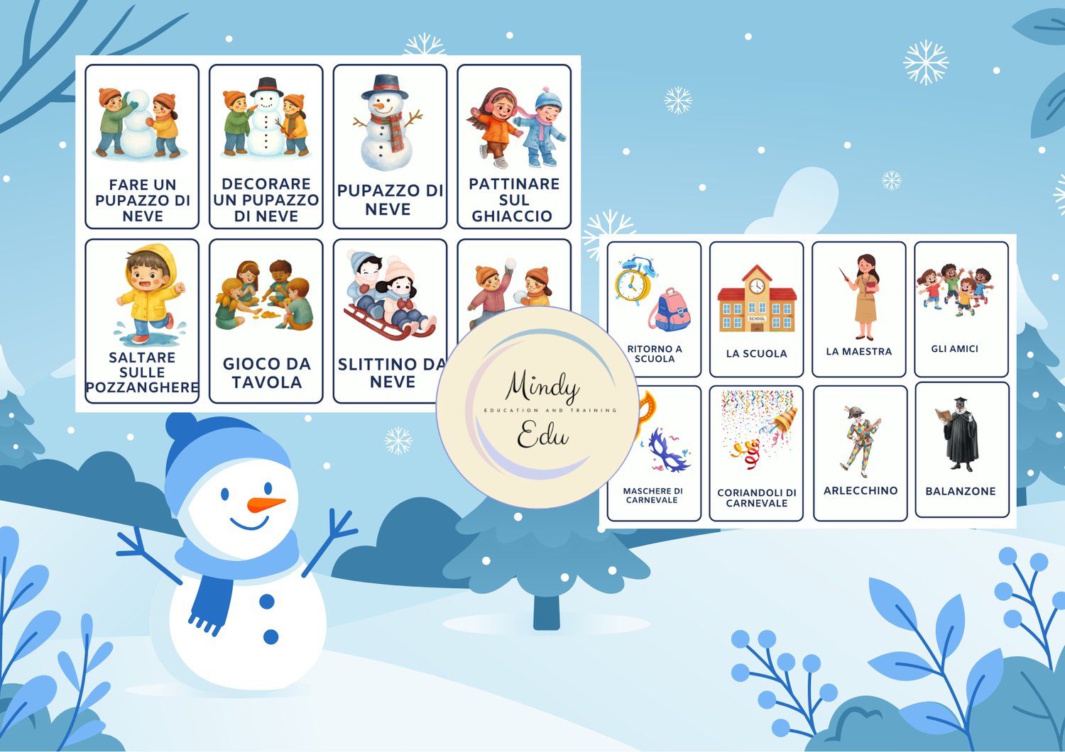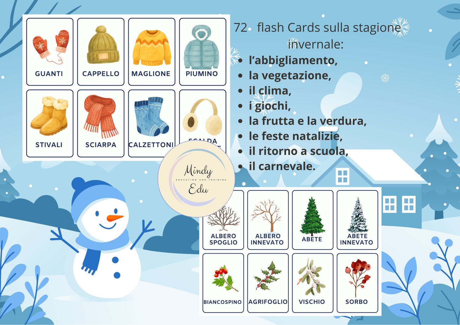 Flash cards inverno: clima, abbigliamento, frutta e verdura, giochi, feste natalizie e carnevale