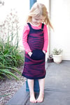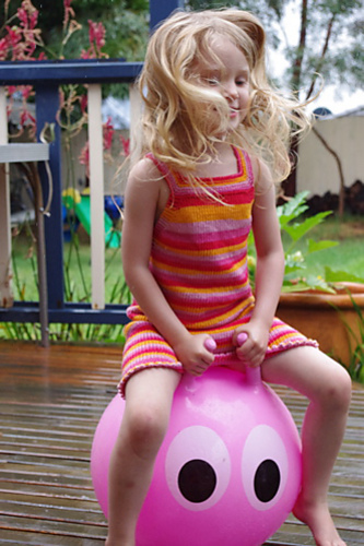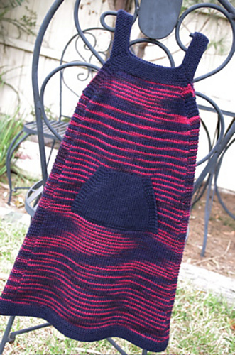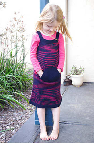 What sets this dress apart is the particular attention paid to the finishing details; the depth of the armholes, good chest coverage, the neatened joins, details for working jogless garter stitch, such subtleties combine to give the finished garment a neater finished look.