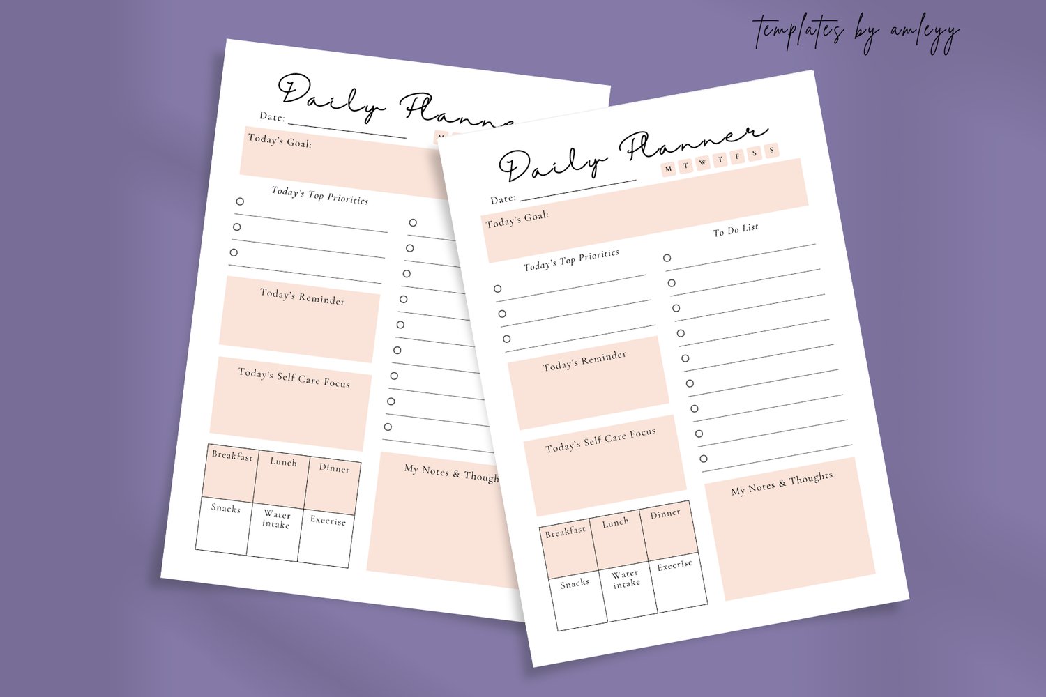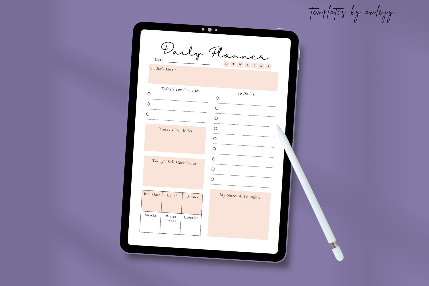 Simple Pastel Daily Planner Template – Canva Editable, Minimalist PDF