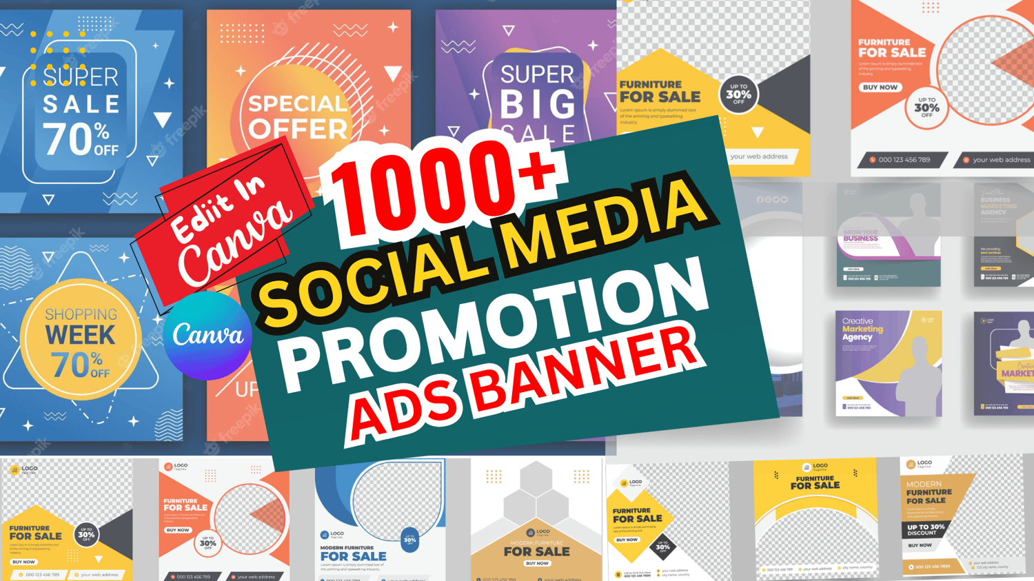1000+ PSD Canva Templates for Facebook and Instagram Ads Bundle - Customizable Social Media Promotion Banners Ads Bundle