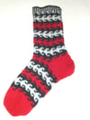 Here’s a sophisticated spin on a heart motif, showing a heart full of nooks and crannies, in which our love is complicated and abstract, with little crooks that reach out to one another. This women’s sock pattern uses a Turkish stitch pattern called “Heart’s Crook”, but not the traditional Turkish sock design. Instead, its short row heel and toe and cuff down approach blend Western and Eastern sock construction technique and pattern in a single design.