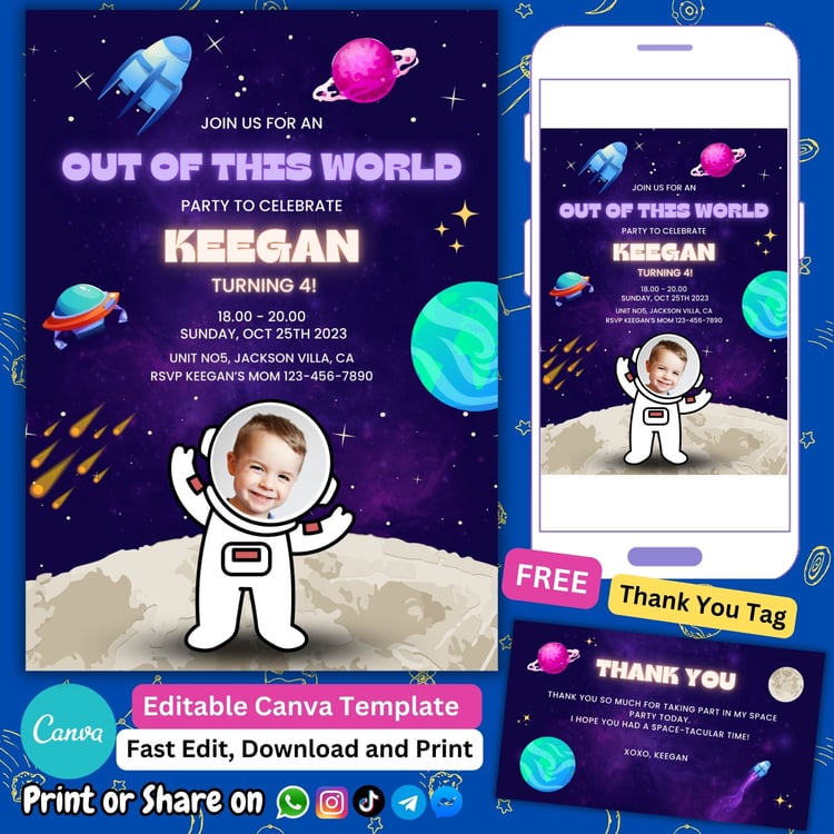 Not only is this invitation visually appealing, but it's also practical. With the editable template. Easily customize the details of the party, such as the date, time, and location, to ensure that everything is just right.