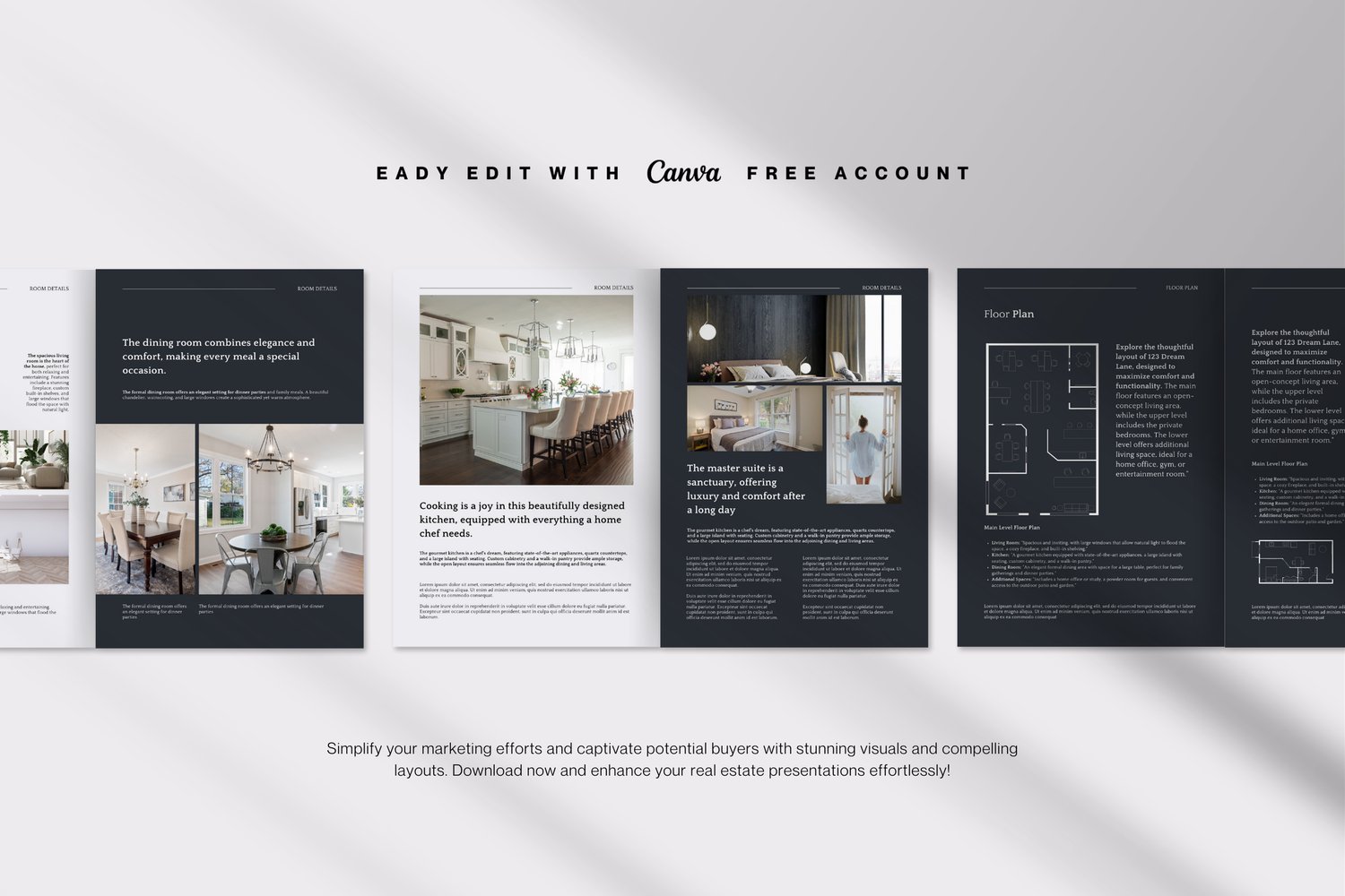 Introducing our Real Estate Brochure Template on Canva! Elevate your real estate marketing with professionally designed, customizable brochures. Perfect for showcasing properties, detailing listings, and promoting open houses, this template ensures your content stands out with elegance and clarity. Simplify your marketing efforts and captivate potential buyers with stunning visuals and compelling layouts. Download now and enhance your real estate presentations effortlessly!