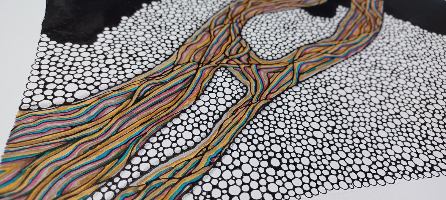 The meditative process of drawing hundreds of circles brings me back to myself and then takes me deeper into peace. It feels like floating, swirling, light as driftwood.