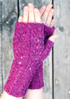 Pattern instructions are given using both metric and US terminology. The pattern includes a fingering-weight and a DK-weight version for the mitts.