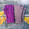 Wild Sage Mitts are inspired by the wild sage plant (Salvia verbenaca) the flowers of which range from soft purple to violet and sprawl out on tall stems.The mitts are worked in the round from cuff up in two easily memorizable lace patterns, given in written and charted format. A cuff with an eyelet rib and a thumb gusset give the mitts a comfortable fit. The same lace pattern used for the hand continues up the thumb. The mitts are finished with a simple garter-stitch border. Left and right mitts are identical and can be worked two-at-a-time using either DPNs or magic loop.