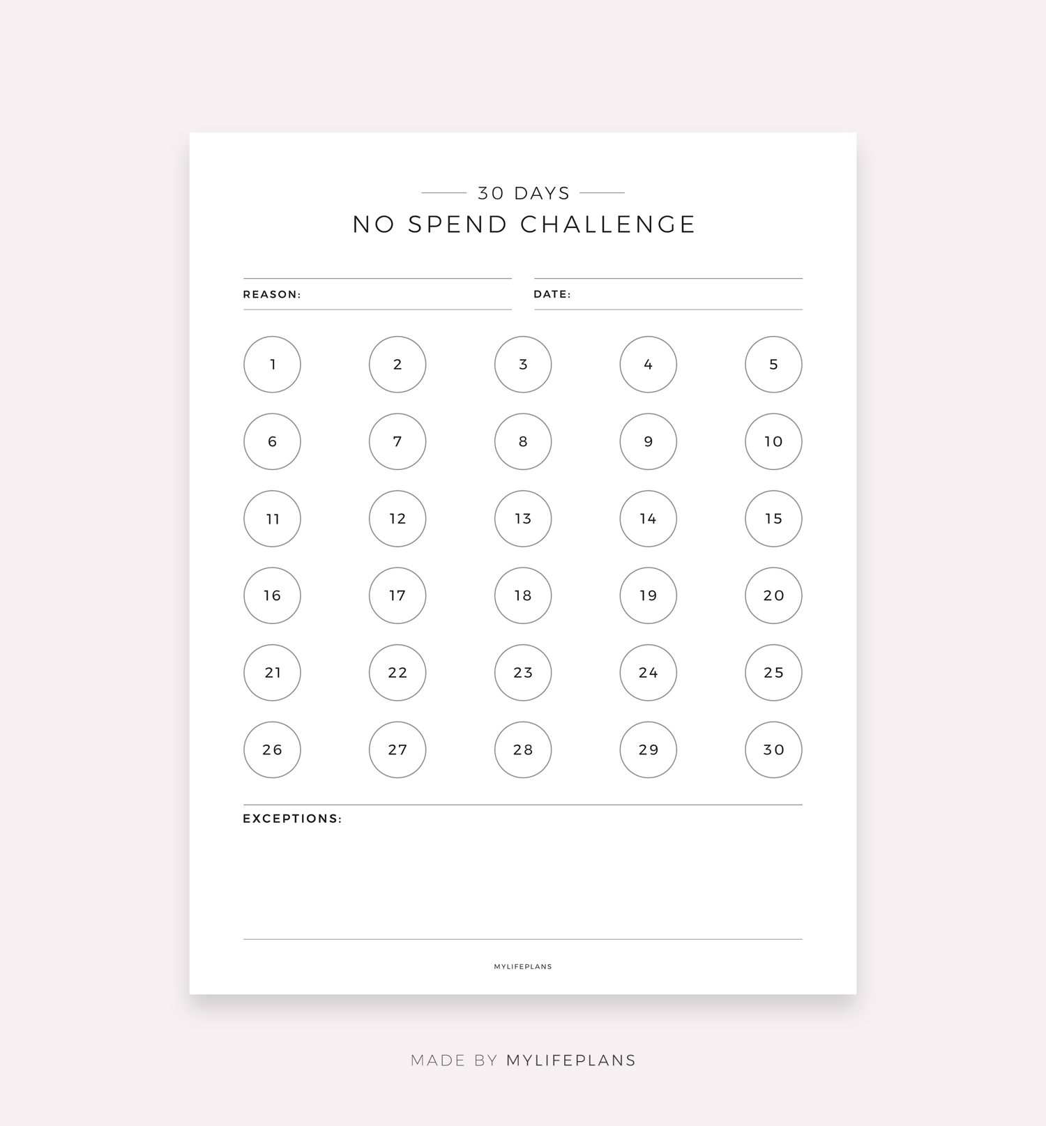 30 Day No Spending Challenge, Digital Template for Goodnotes, Notability, Ipad