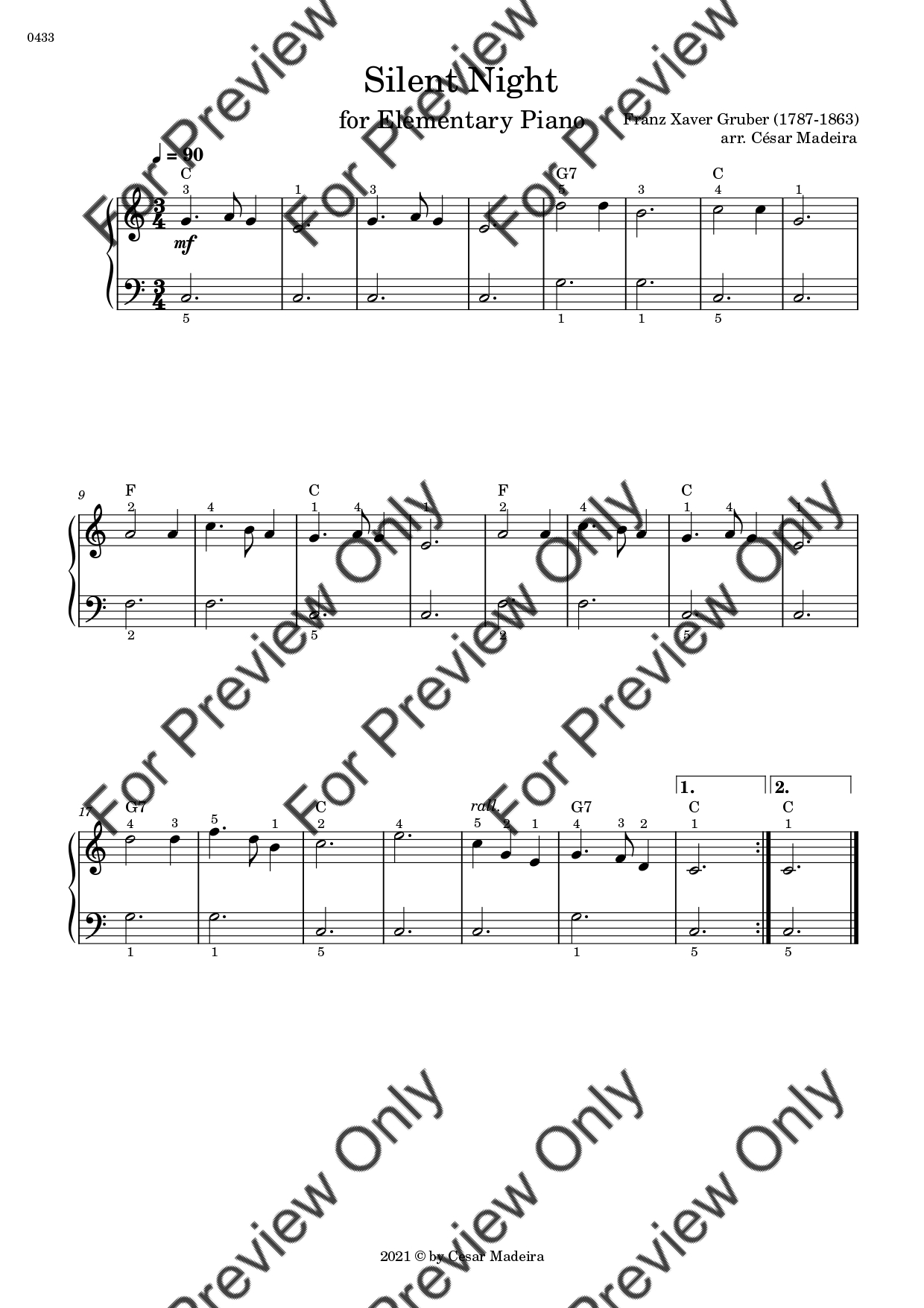 Silent Night. Arrangement for Elementary/Very Easy Piano. With Full Score. Have fun!