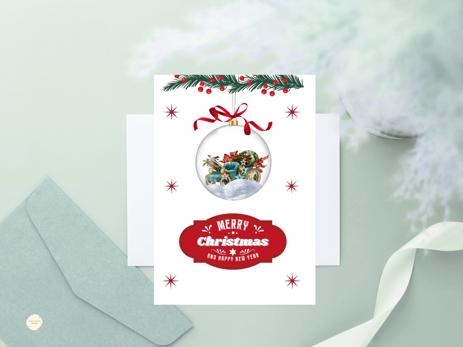 π³ Secure checkout β pay with PayPal or Debit/Credit Card. Send classic holiday cheer with this charming vintage car Christmas card! The festive green car filled with gifts and greenery captures the joy of the season β perfect for anyone who loves timeless Christmas designs.