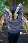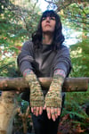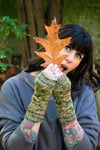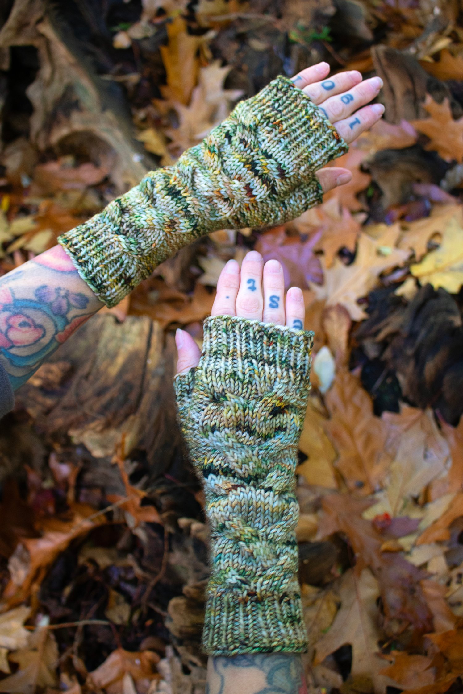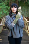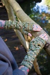 Crocodile is the next installment for my upcoming book Through the Knitting Glass! These fingerless gloves feature a strangely unusual cable stitch across the top and a sea of purls along the bottom, reminiscent of a sinister tail gliding through murky water. Invisible thumb gussets and a bit of ribbing add a finish as sleek as scales. They are available in three different sizes to provide the best possible fit.