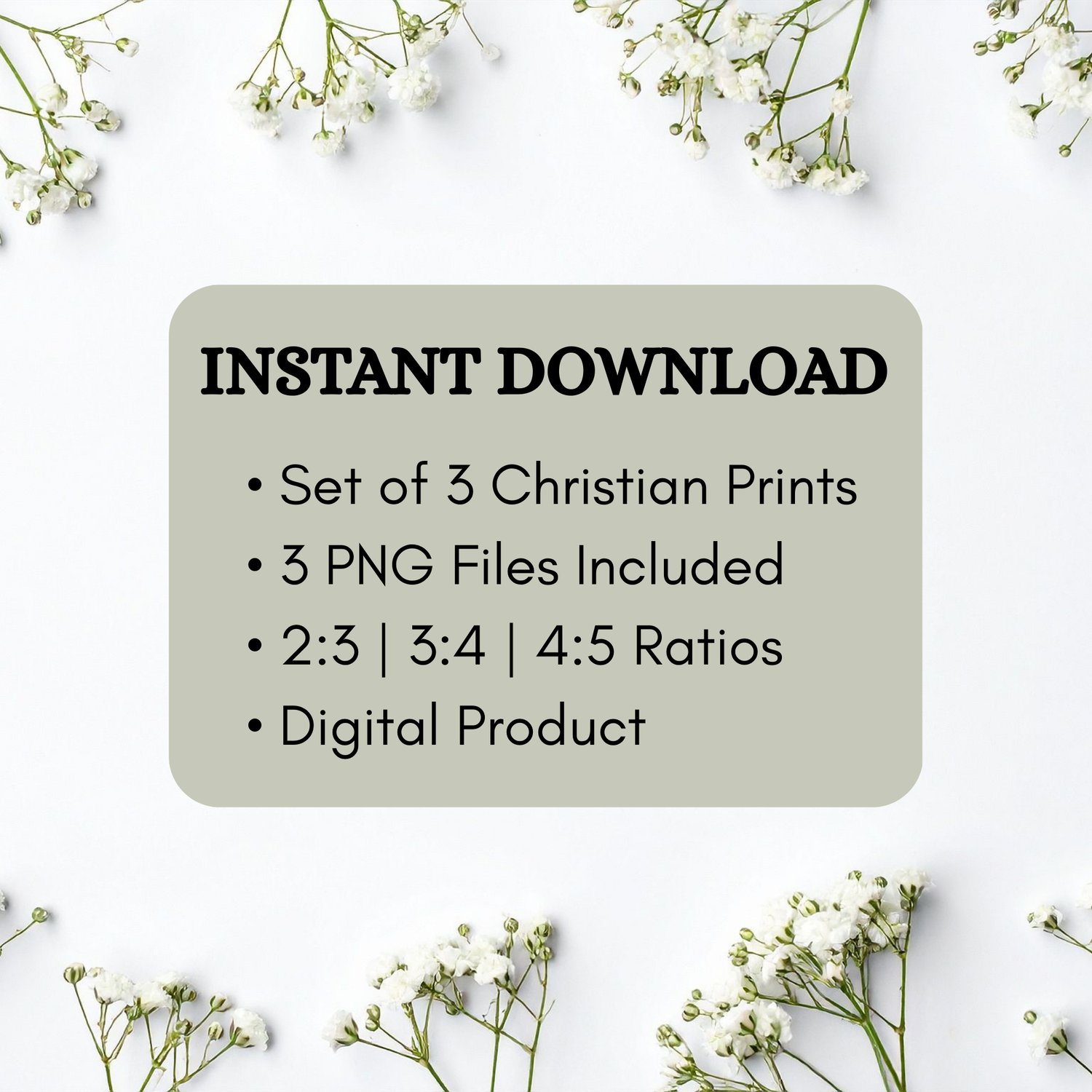 Minimalist Christian Scripture Wall Art Set of 3, Bible Verse Printables PDF (2:3, 3:4, 4:5) – Faith Digital Download