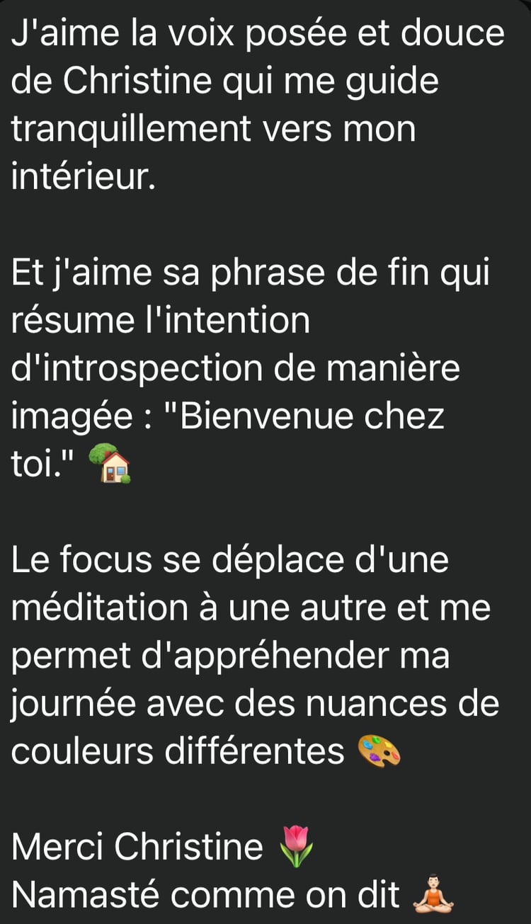 Chaque écoute ramène du calme, fait émerger de la clarté, et permet de faire des choix plus conscients dans son quotidien.