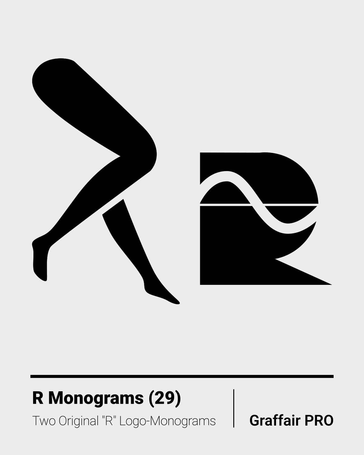 R Monograms (29): The 29th set of two original "R" logo monograms, included in the "1050 SVG Monograms" super bundle, which also features an Index catalog.