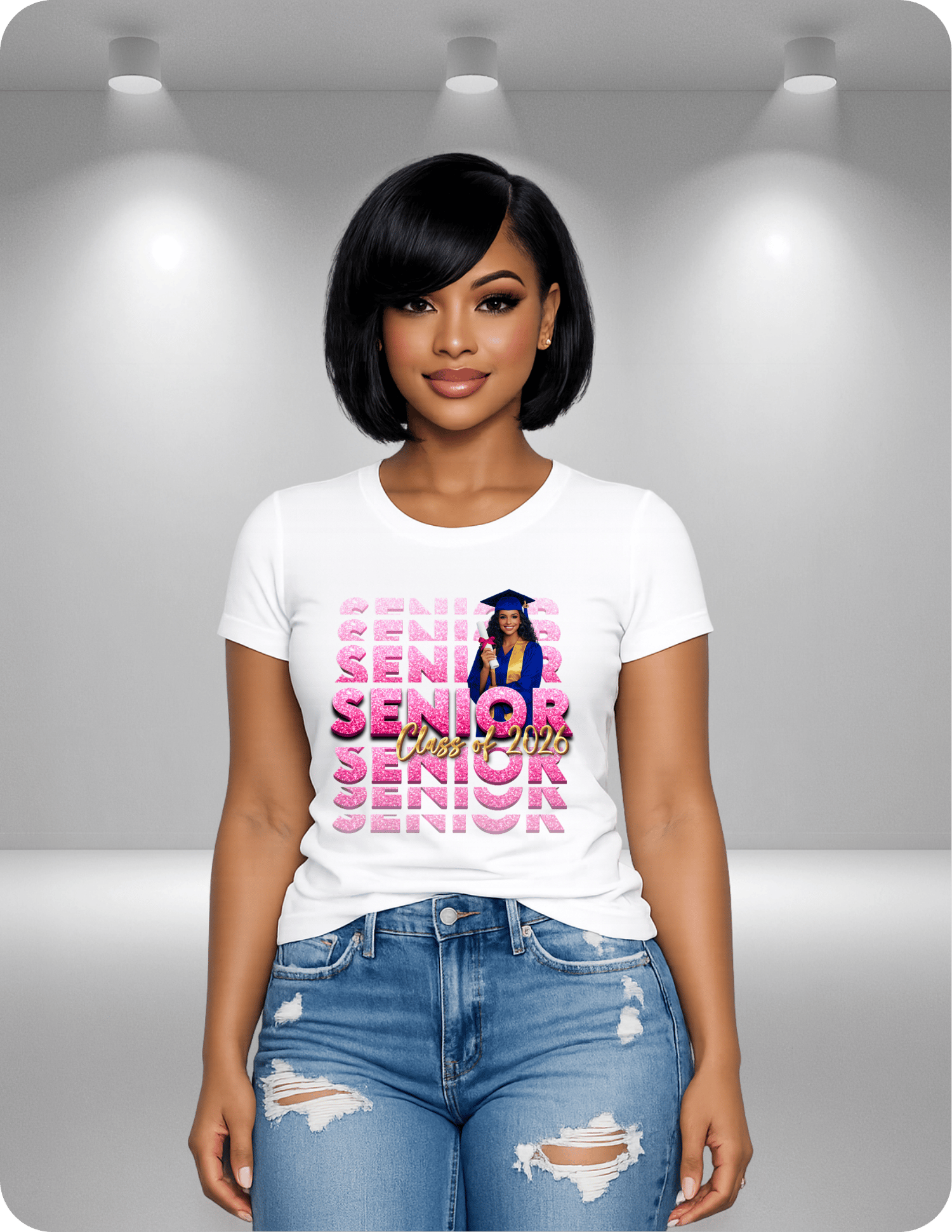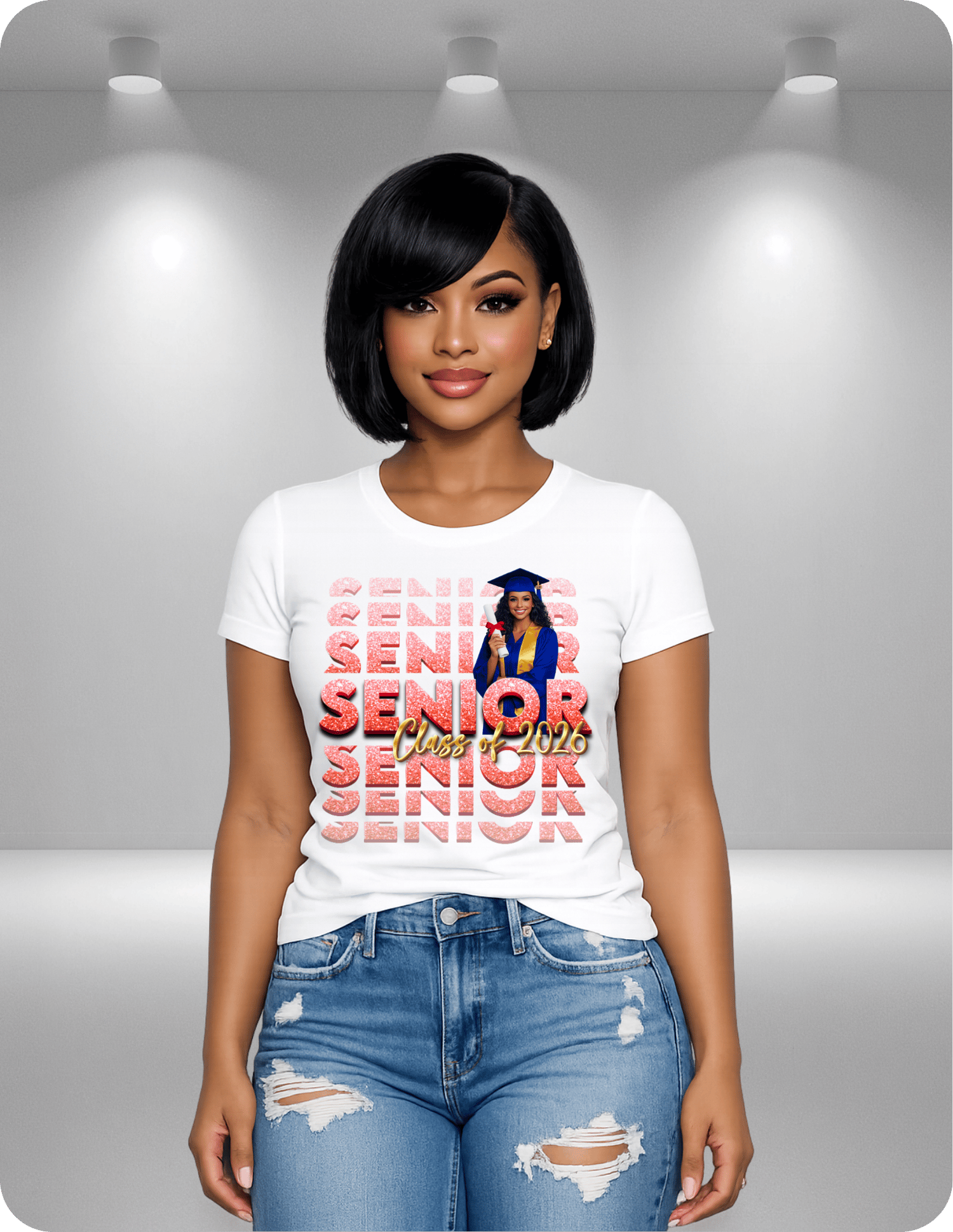 Bold repeating “SENIOR” background for a trendy look
