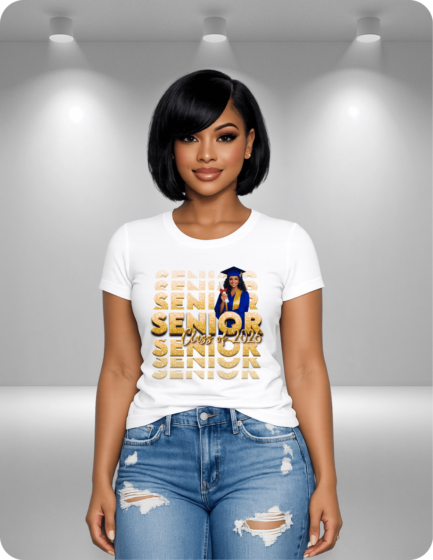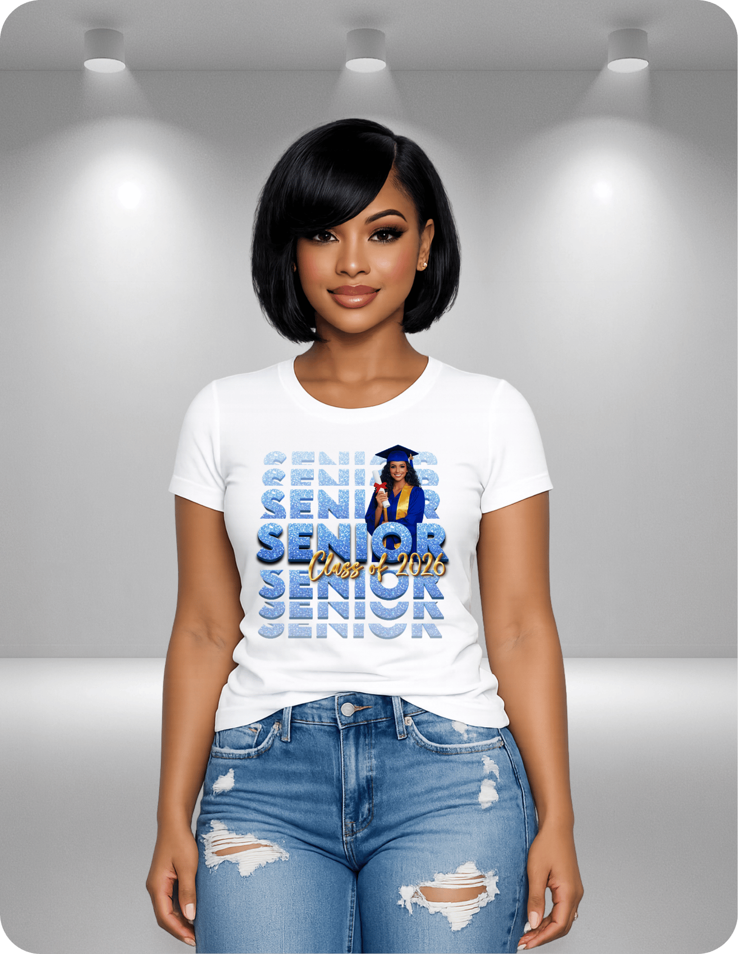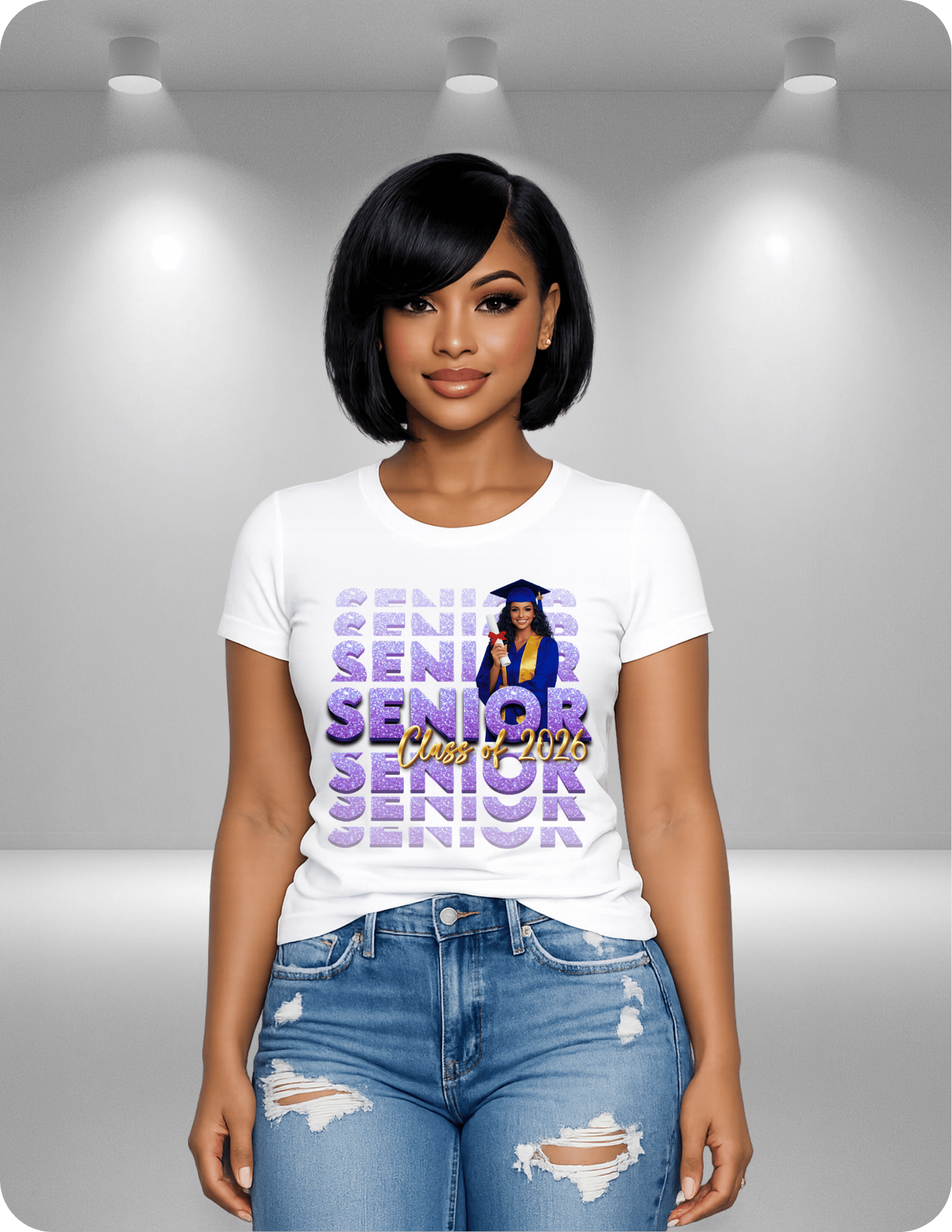 Once purchase is complete, a member of our team will reach out to you via email for graduate portrait. Shirts are shipped 3-5 days after purchase. Rush shipping and ordering is available.