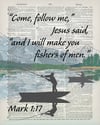 Moved by Jesus' words from Mark 1:17, we go into the world to be "fishers of men." This dictionary art page is a wonderful reminder of the joyful calling that God has for each of us.