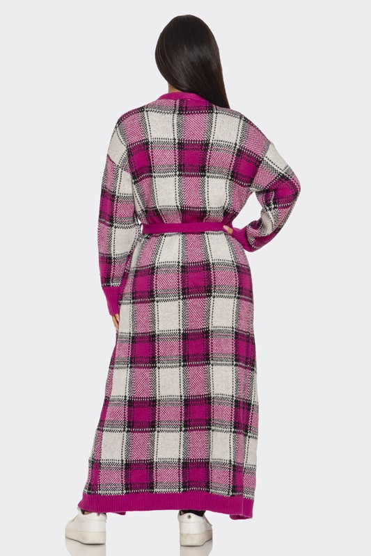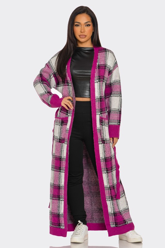Wrap yourself in cozy sophistication with the Plaid It Cardigan, a timeless layering piece designed to elevate your cold-weather wardrobe. Featuring an open-front design with a chic belted waist, this longline cardigan delivers both comfort and polish.