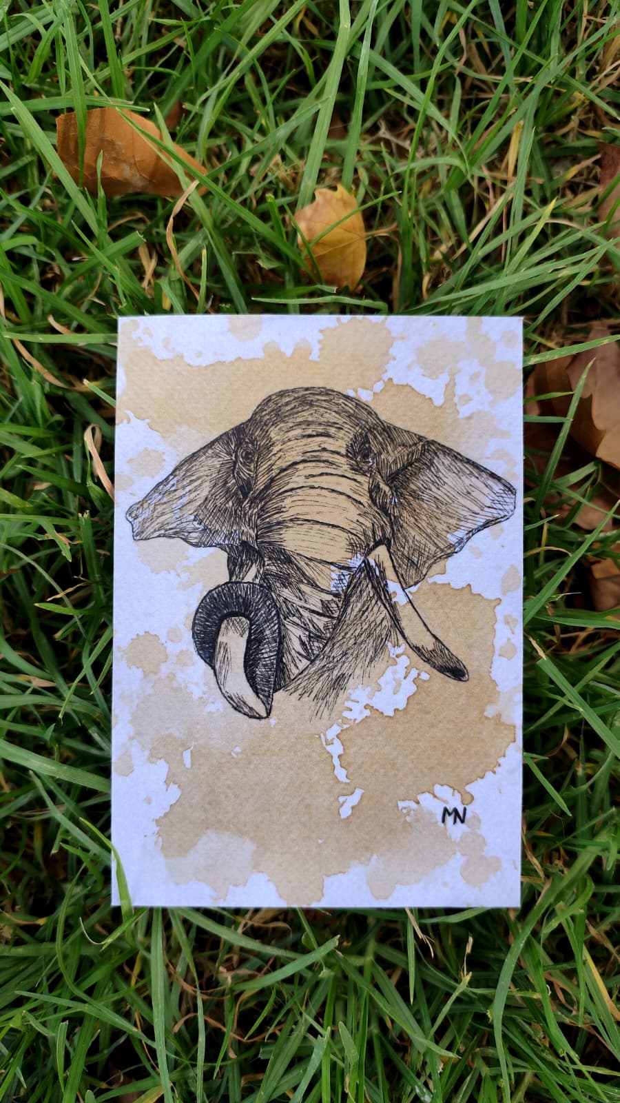Lámina realizada en café y delineador negro que captura la majestuosidad del elefante, uno de los animales más impresionantes y admirados del mundo. Su presencia poderosa y serena se refleja en cada trazo, resaltando la grandeza y la nobleza de esta especie.