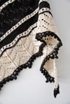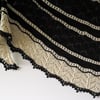 Shawlands was inspired by my love of black tea, and is named after a tea variety from the Shawlands Estate in Ceylon. It is hearty, robust, comforting, and warming — like snuggling inside on a chilly autumn’s day with a cup of tea and a good book.Shawlands is a generously-sized shallow triangle shawl worked from the top down in two colors of DK-weight yarn. Increases are placed on every row at each edge and on every third row on each side of the garter-stitch center spine. Stockinette stitch and lace in the main color and sections of garter stitch and eyelets in the contrasting color alternate throughout the body of the shawl. A lace border with a picot bind-off finishes off the design.
