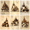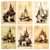 What You Get: Sepia Epic Storybook Fantasy Architecture - 20 Art Prints