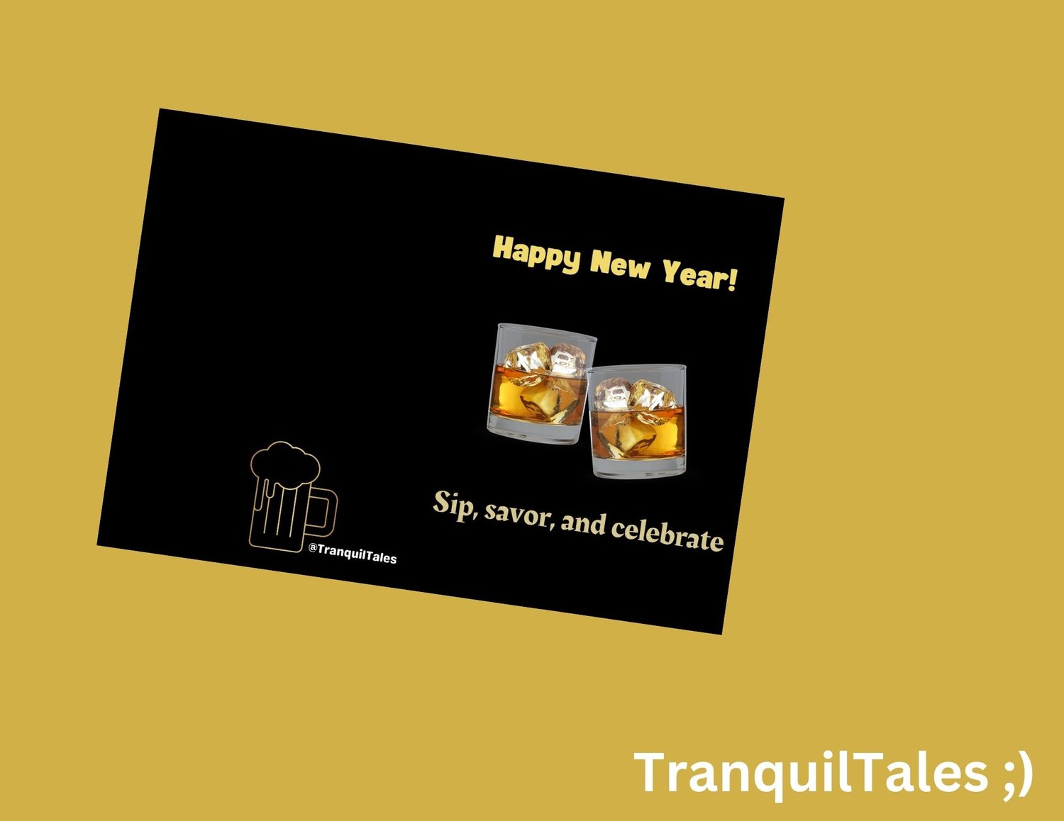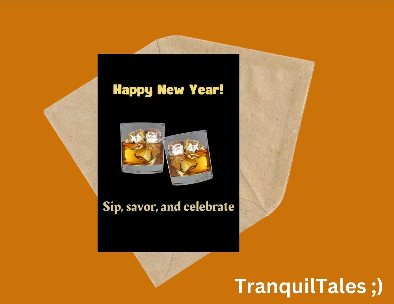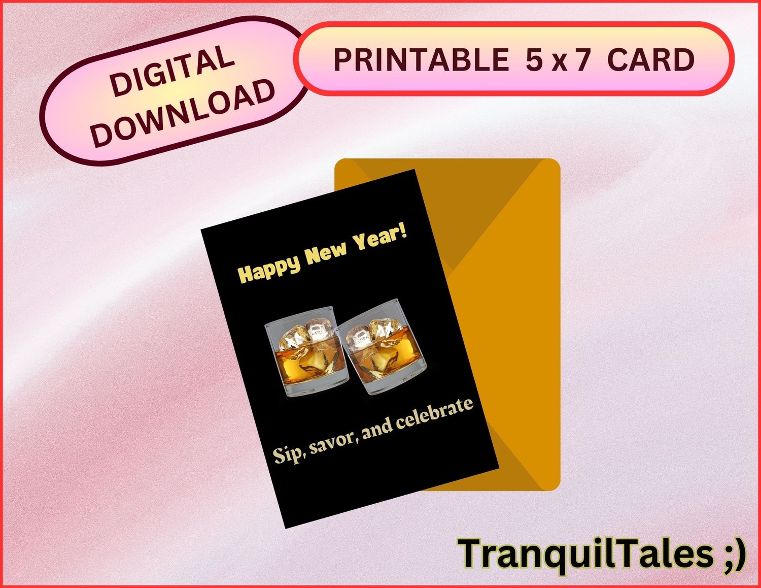 Happy New Year! Sip, Savor, and celebrate Card - 5" x 7" inches - New Year card - PDF File