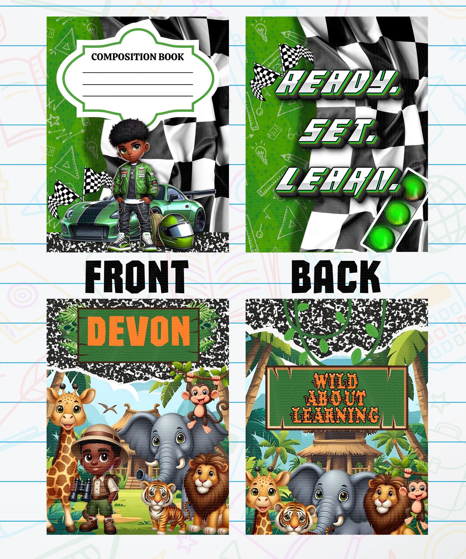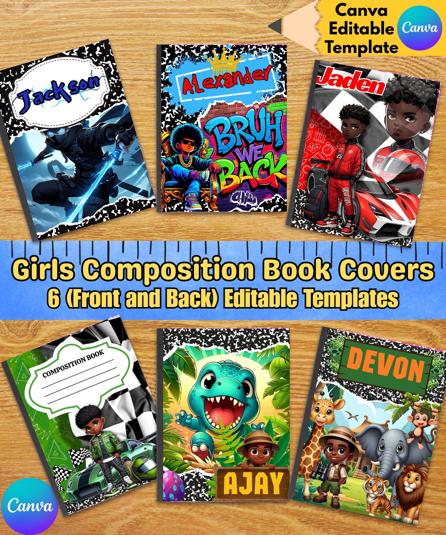 Editable Boys Composition Book Covers – Canva Template Bundle
