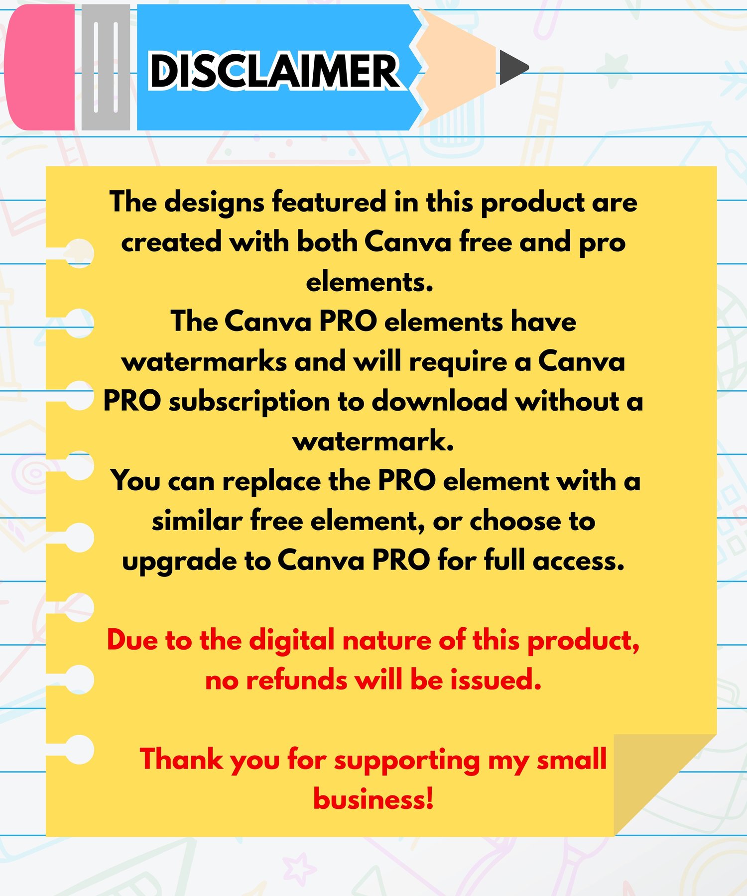 - A mix of Free & Pro Canva elements (Canva Pro account is recommended to download pro elements or replace pro elements with free or your own elements)