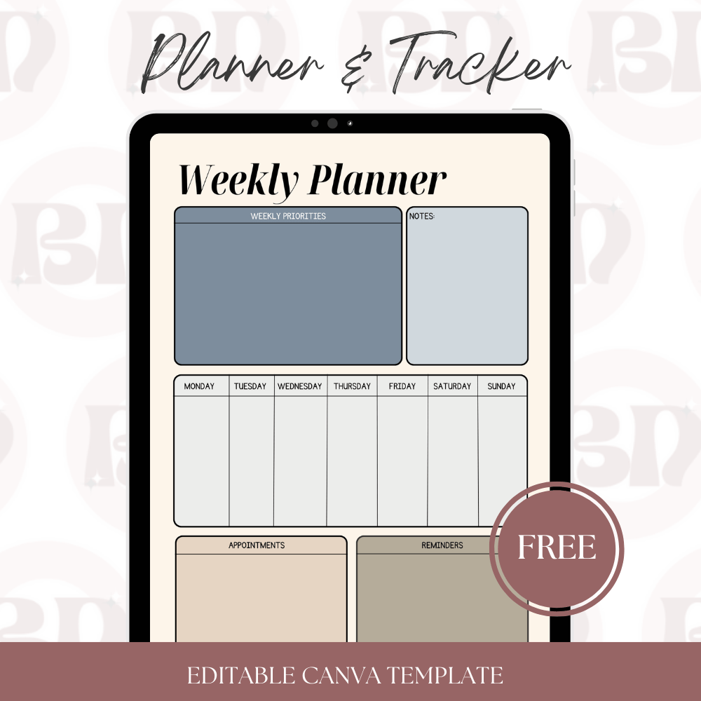 FREE!! Planner & Tracker Canva Template – Editable Link