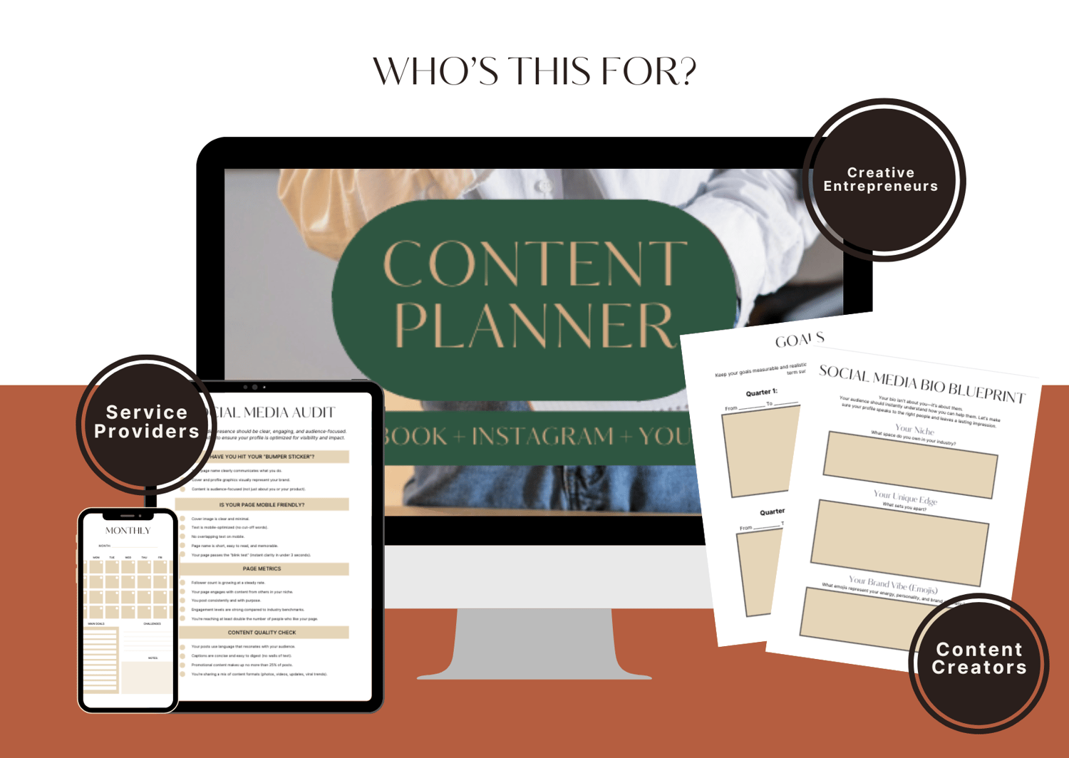Designed for creative entrepreneurs, service providers, and small business owners, this planner will take the guesswork out of content creation and give you a structured roadmap for success.