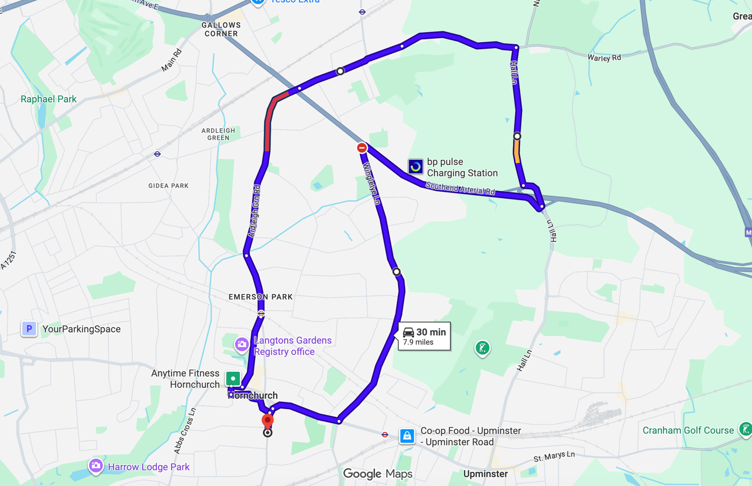Practise real driving test routes in Hornchurch(london) before your exam – open directly in Google Maps